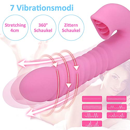 ❤ Doppelte Stimulation & 7 Vibrationsmodi — 2 starke Motoren, Unser Klitoris G-Punkt Dildostimulator besitzt eine starke Zungenfunktion und Vibrationsfunktion. Weiche Zungenform, verrückte Stimulation der Klitoris. Sie können Lecken und Vibrationsmodi unterschiedlicher Stärke genießen. Unsere zweimotorigen Vibratoren helfen Ihnen, leicht zum Orgasmus zu kommen.
