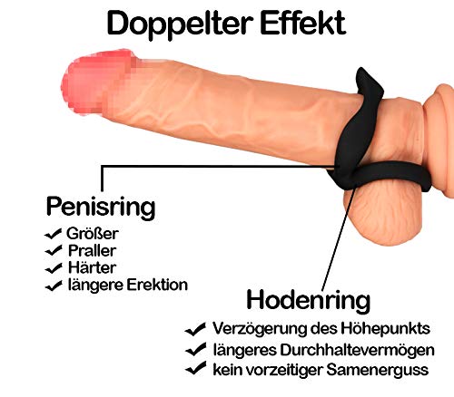✅ DOPPELTER EFFEKT – Dieser Penisring ist ganz speziell. Er umfasst nicht nur Ihr bestes Stück, sondern auch die Hoden und sorgt somit für einen doppelten Effekt und extra langes Durchhaltevermögen.