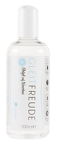 GLEITFREUDE: Dieser Name steht für Genuss auf höchster Ebene, und das bei allen erdenklichen Sexpraktiken. Ob vaginal oder anal – das Gleitmittel auf Wasserbasis beschert dir unvergesslich sinnliche Stunden. Darüber hinaus ist es das perfekte Zubehör zu diversen Sextoys. Die Langzeitgleitwirkung sorgt dafür, dass auch bei einem lang andauernden Liebesspiel der Genuss ungetrübt bleibt. Die GLEITFREUDE fühlt sich sehr angenehm auf der Haut an, klebt nicht und bietet höchste Ergiebigkeit. Dabei hinterlässt das Gleitmittel keinerlei Spuren – immerhin ist es absolut fettfrei und zudem wasserlöslich. Es lässt sich also leicht und einfach mit Wasser abwaschen. Nach einigen Stunden oder am nächsten Morgen … Dass unsere GLEITFREUDE geruchsneutral und hautfreundlich ist, dürfte ebenfalls von Bedeutung sein. GLEITFREUDE ist für alle Sextoys geeignet, aber insbesondere auf alle Lumunu passion products Artikel perfekt abgestimmt. Dosierung: Je nach Belieben so viel Gleitmittel wie du benötigst auf einer Körperstelle deiner Wahl auftragen.