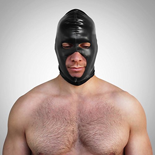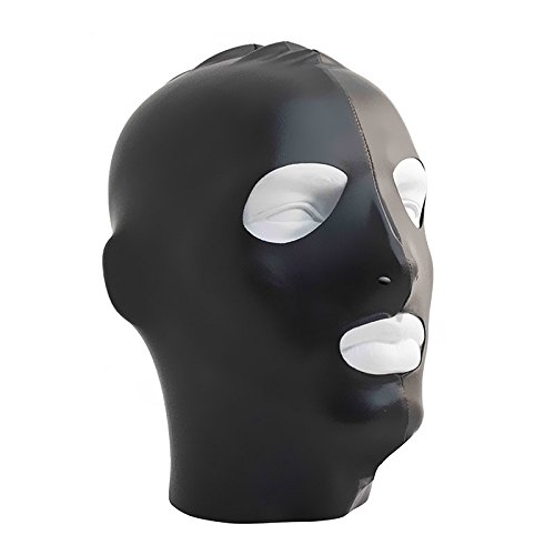 Datex ist ein Doppelschichtmaterial , bestehend aus einer Trägerschicht aus dehnbarem Polyester / Elastan mit einer Deckschicht aus 100% Naturlatex mit glänzender Oberfläche. Es hat das Aussehen von Gummi, kann aber genäht werden und ist nicht so empfindlich wie Gummi. Ein weiterer Vorteil ist, dass die Maske ohne Hilfe von Talkumpuder oder Silikonen verwendet erden kann. Diese Lycra Maske ist aus Premium-Klasse Lycra (auch bekannt als Spandex) hergestellt. Sie fühlt sich wunderbar leicht an, ohne den Kopf zu beschweren.
