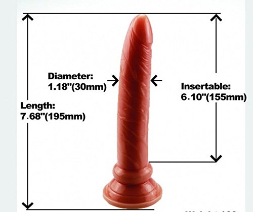 Dildo : Länge: 7,68 „(195mm); Einführbar: 6,10 „(155mm); Durchmesser: 1,18 „30 mm)