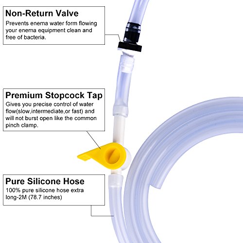 NICHT GIFTIG UND GERUCH FREI: Dieses Kit besteht aus 100% ungiftigen Materialien. Alles, vom Einlaufeimer über die Spitzen bis zum Schlauch, ist für den menschlichen Körper völlig unbedenklich. Es ist auch völlig geruchsfrei, so dass Sie den starken Plastik- / Gummi-Geruch älterer Kits vergessen können