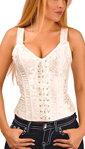 Diese Brokat Corsage im Stil einer Weste schimmert wunderschön weiß.