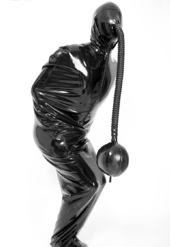 Und hier wieder eine wahnsinnig tolle Maske, die in keiner Sammlung fehlen sollte! Ein herrliches Stück in einer schönen dicken Materialstärke von 0,6 mm. Die Maske hat am Hinterkopf einen Reißverschluß zum leichteren an- und ausziehen, der mit einem Einklemmschutz hinterlegt ist. Im Mundbereich ist ein Anschlußstück für einen Schraubaufsatz eingearbeitet. In diesem Angebot der Verbindungsschlauch für den Schraubaufsatz und auch der Atembeutel INKLUSIVE sind (siehe Bild 2)!