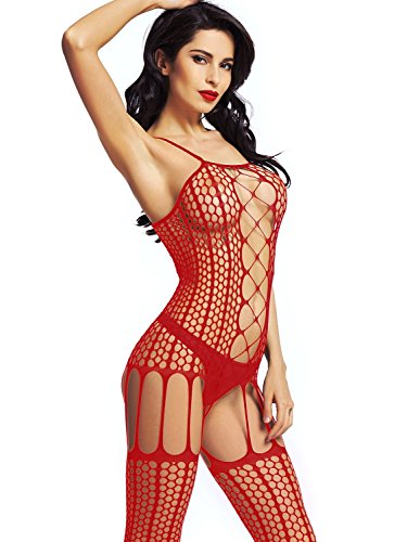 LOVELYBOBO 2-Pack Damen Unterwäschen Reizwäsche Netz Strumpfhose Bodystockings Hohle Blumen Frauen Bodysuit Nachtwäsche Dessous (schwarz+rot) günstig online kaufen