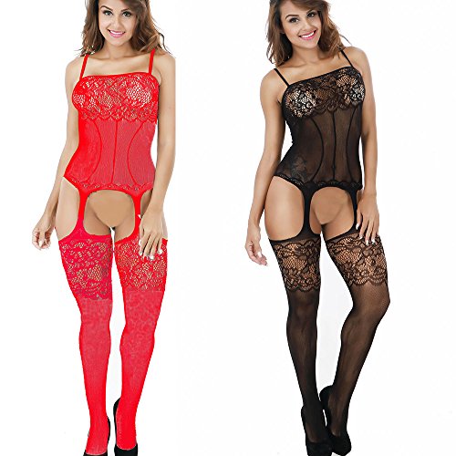 LOVELYBOBO 2-Pack Damen Unterwäschen Reizwäsche Netz Strumpfhose Bodystockings Jumpsuit Frauen Bodysuit Nachtwäsche Dessous günstig online kaufen