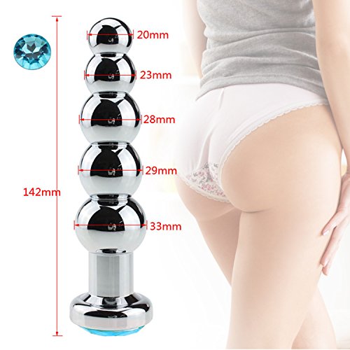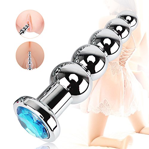 Metal Anal Trainer Butt Plug für Anfänger, 5 Perlen Anal Sex Toy, Jewelled blau