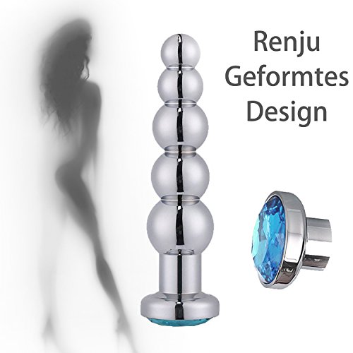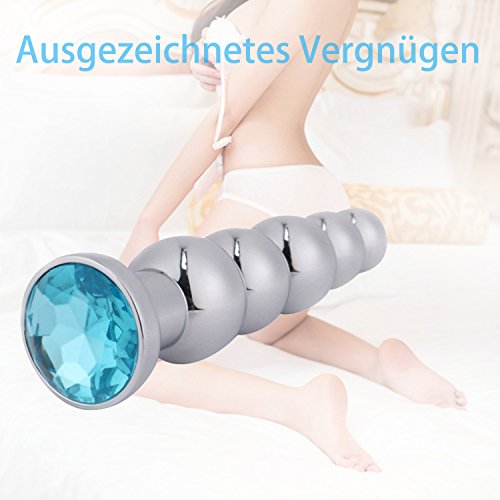 Metal Anal Trainer Butt Plug für Anfänger, 5 Perlen Anal Sex Toy, Jewelled blau