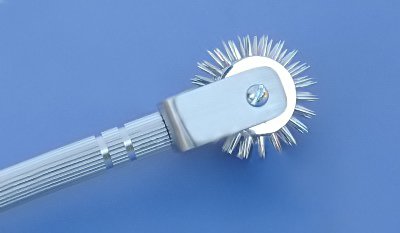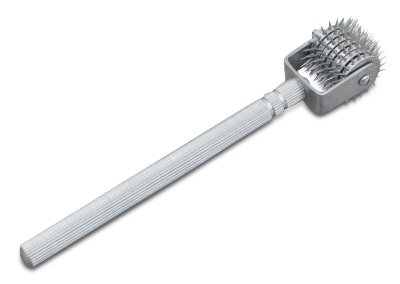 MAXI Nadelrad mit 7 Rädern Gesamtlänge: 18,0 cm Spitzen des Rades: ca. 1,0 cm Hier erwerben Sie DELUXE Ausführung mit einem Griff aus rostfreiem Stahl Die Standard-Ausführung hat nur einen Griff aus verchromtem Messing Sehr leicht zu reinigen.