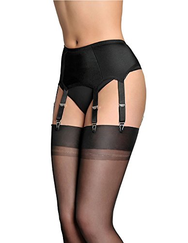 Beautiful highwaist suspender belt with pretty lace trim. 6 straps with metal clasps and adjusters. 3 position hook and eye rear fastening for extra comfort. Treat yourself today.
