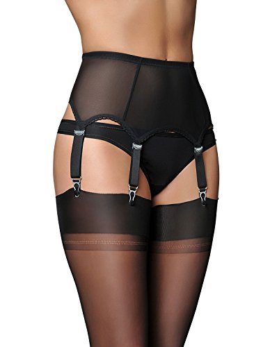 Gorgeous power mesh suspender belt with pretty lace edge. 6 adjustable straps 19mm wide with luxurious metal clasps. 3 position rear fastening for a perfect fit. Treat yourself today.