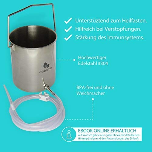 EBENTHAL-VITAL Darmeinlauf mit 2 m Schlauch und Edelstahlbehälter – Irrigator zur Darmreinigung BPA-frei – Darmspülung sowie Intimdusche – Darmreinigungs-Set 2 Liter günstig online kaufen