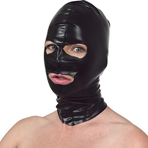 Stretchig glänzende Fetisch Maske offene Augen und Mund (schwarz) günstig online kaufen