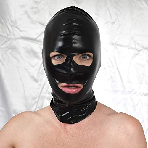 Stretchig glänzende Fetisch Maske offene Augen und Mund (schwarz) günstig online kaufen