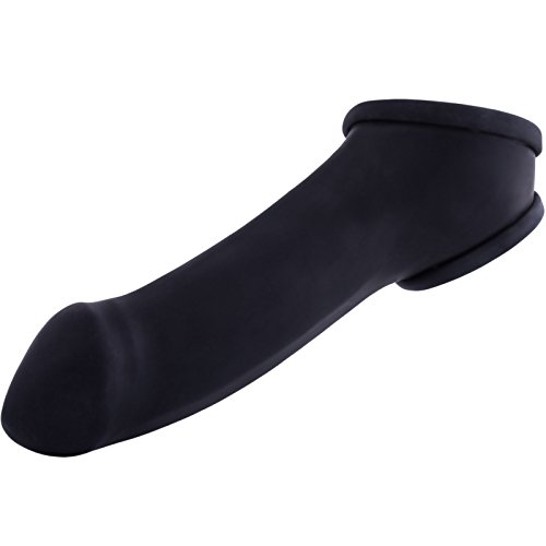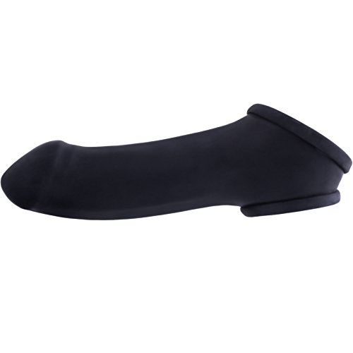 Dieser dehnbare Penis-Gummi-Anzug umschließt den Penis komplett und lässt, durch den Ballstretcher, die Hoden bleiben, wo sie hingehören.