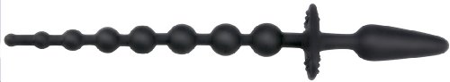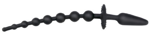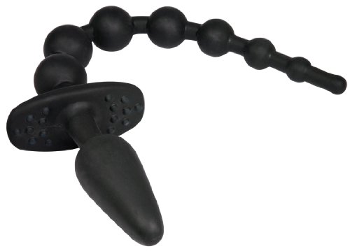 Analplug und Analkugelkette in einem! Auf der einen Seite verwöhnt eindringlich der anatomisch ideal geformte Analplug mit handlich breiter genoppter Basis und auf der anderen Seite eine Kugelkette mit 7 unterschiedlich großen Kugeln. Gesamtlänge ca. 32 cm. Plug: Einführtiefe ca. 8,5 cm, Ø 1–2,4 cm. Kette: Einführtiefe ca. 21 cm, Ø 0,7–2,4 cm. Schwarz. Material: Silikon, phthalatfrei gemäß EU-Verordnung 1907/2006/EC. Silikon