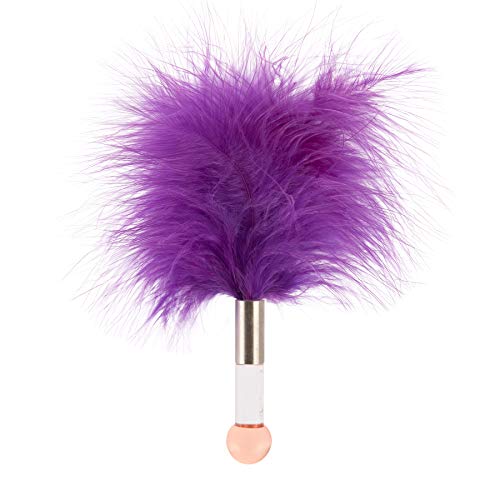 Flauschig weiche Massage Streichefeder in Lila und durchsichtigen Lila farbenen Kugel Griff mit einer einer Gesamtlänge von ca.17 cm wie auf den Orginal Foto dargestellt. Der Griff ist mit echten flauschigen Federn besetzt