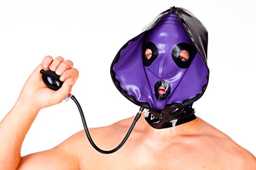 Eine ganz besondere Maske und auf den ersten Blick gar nicht so offensichtlich, denn aufblasbare Masken gibt es viele. ABER diese hat zu den freien Nasenlöchern auch noch kleine Augenöffnungen. Somit ist das absolute Latexfeeling perfekt und der Träger (oder die Trägerin) kann auch noch sehen was um ihn rum passiert. Sie ist doppelwandig geklebt und kann somit schön prall aufgepumpt werden . Die Pumpe ist im Lieferumfang natürlich auch enthalten! Nach dem aufblasen kann die Pumpe entfernt werden. Das Ventil wird dann mit einer kleinen Drehverschlusskappe (ebenfalls enthalten) verschlossen. Materialstärke 0,4 mm, getaucht & geklebt.