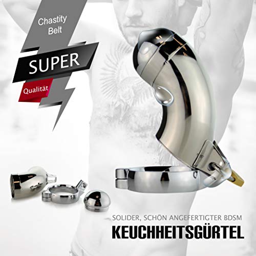 Ein solider, wunderschöner männlicher BDSM-Tugendgürtel. Speziell entwickelt, um perfekt zum Körper zu passen – es hat viele Ringe von verschiedenen Gröβen. Sie passen es jedem Penis an. Dank seiner einzigartigen Konstruktion ist es sehr einfach, die Hygiene zu erhalten. Eine ausgezeichnete Sicherheit gegen die Möglichkeit, den Gürtel der Tugend zu entfernen, ist ein echtes Vorhängeschloss mit einem Schlüssel verschlossen, ohne den Schlüssel wird der Penis nicht los.