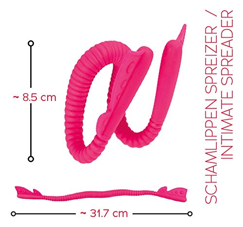 Spreizt die Schamlippen und lässt IHN die Enge spüren! Die rosafarbene Schamlippenspange lässt sich individuell in Passform biegen. Gebogen in die Vagina eingeführt, wird die Klitoris freigelegt und gleichzeitig der G-Punkt gezielt stimuliert, während ER bei jedem Rein und Raus von den Reibungen der ausgeprägten Reizrillen in die Zange genommen wird. Material: Metall (innen), Silikon. Metalldraht mit Silikonummantelung