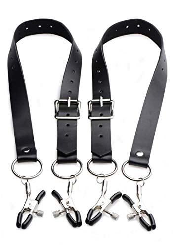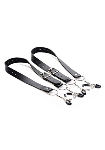 Mit diesen einmaligen Bändern, die um Ihre Oberschenkel gewickelt werden, an Ihren Schamlippen festgeklemmt und sie aufspreizen werden, können Sie die Intensität Ihrer perversesten Szenen steigern! Perfekt für Demütigungsspiele, gynäkologische Rollenspiele oder welche böse Fantasien Sie auch immer zum Leben erwecken möchten, dieses einzigartige Set hält Ihre Partnergenitalien ultrasensibel und hilflos ausgesetzt wie nie zuvor. Die Gurte sind innen mit einer samtigen Weichheit ausgekleidet und haben Schnallen, um sie um die Oberschenkel anzupassen. Mit Rändelschrauben kann der Druck der Klemmen mit Gummispitzen reguliert werden. Werden Sie bei Ihren BDSM-Szenen kreativ!