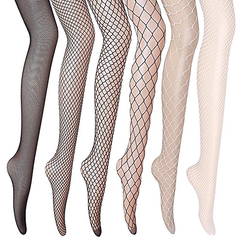 6 Stile von Arten: schwarze Netzstrumpfhosen in 4 verschiedene Maschenöffnungen von kleinen Maschen, mittelgroßen Maschen, großen Maschen und minigroßen Maschen, weiße Netzstrumpfhosen in 2 verschiedenen Maschengrößen von großen Maschen und kleinen Maschen, jeweils Maschenweite für 1 Stück, Ihre verschiedenen Bedürfnisse zu erfüllen.