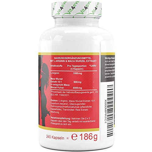 L-Arginin + Maca – 300 Kapseln – Extra hochdosiert: 9800 mg je Tagesdosis – Für aktive Menschen – Pflanzliche Nahrungsergänzung – Laborgeprüft – Vegan https://lebensechte-liebespuppe.de/de-de/vit4ever-l-arginin-maca-intenso-240-kapseln-extra-stark-mit-9800-mg-pro-tagesdosierung-hochdosierte-formel-60-tage-anwendung-laborgepruefte-qualitaet-vegan/ Mon, 07 Oct 2019 20:05:06 +0000 https://lebensechte-liebespuppe.de/de-de/vit4ever-l-arginin-maca-intenso-240-kapseln-extra-stark-mit-9800-mg-pro-tagesdosierung-hochdosierte-formel-60-tage-anwendung-laborgepruefte-qualitaet-vegan/ HERVORRAGENDES PREIS-LEISTUNGSVERHÄLTNIS: 240 vegane Kapseln im 2 Monatsvorrat. Extra hochdosiert mit 8000 mg reinem Maca Wurzel Pulver (Hergestellt aus 800 mg reinem Maca Wurzel Extrakt 10:1) + 1800 mg reines L-Arginin Base je Tagesportion (4 Kapseln). Die hochdosierte Kombination aus reinem L-Arginin Base und Maca Extrakt ist ein rein pflanzliches Nahrungsergänzungsmittel mit einer optimal aufeinander abgestimmten Zusammensetzung.