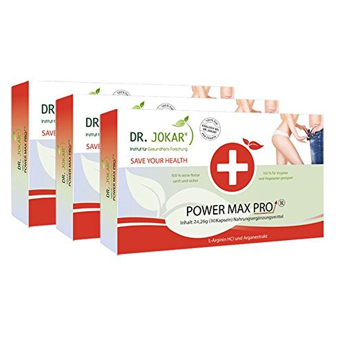 Dr. Jokar Power Max Pro ist das innovativste Potenzmittel-aus zwei starken Aktivatoren L-Arginin und Arganextrakt: Arganöl: Das alt bewährte Aphrodisiakum. Es legt den Turbo für Kraft, Energie und Ausdauer!… L-Arginin: Der Beste Treibstoff für den optimalen Blutfluss in den Schwellkörpern! Mehr Produktion von Sexualhormonen Die Sexuelle Ausdauer steigt Verstärkung der sexuellen Lust Mehr Potenz, bessere Erektion 100%ige Reinheit, hohe Qualität, neutraler Geschmack. Potenzmittel für Veganer und Diabetiker geeignet.