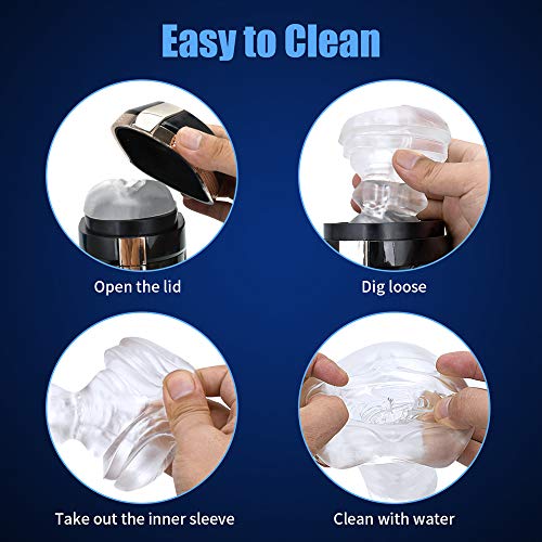 [EINFACHE BEDIENUNG MIT EINER TASTE UND LEICHTE REINIGUNG] — Automatischer Cup Masturbator verfügt verschiedene Geschwindigkeiten Teleskopische Vibrationsmodi, die per Knopfdruck einstellbar sind (3 Geschwindigkeiten, die mit einem Tastendruck von langsam zu schnell wechseln. ); Leicht zu reinigen. Entfernen Sie die Silikon Innerei direkt heraus und waschen Sie ihn mit warmem Wasser.