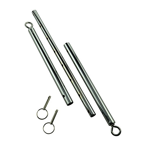 3 Teilige massive Spreizstange zum Anbringen weiterer Fessel. Die Spreizstange aus massivem Stahl lässt auf eine Länge von 55-85 einstellen. Die Einstellung erfolgt mit 2 Bolzen. An beiden Enden sind 2 massive Stahlringe angebracht. Das Gesamtgewicht beträgt ca. 570 Gramm.