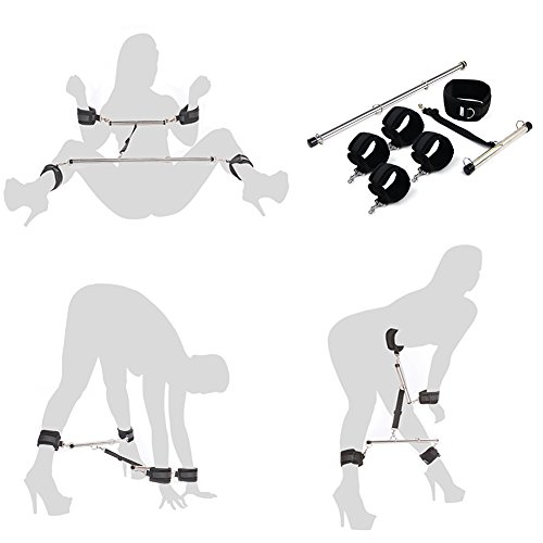 VDie Spreizstange kommt mit 5 angenehmen Fesseln in 2 verschiedenen längen. Die längeren Fesseln werden deinem Objekt der Begierde an die Füße angelegt und die kürzen an die Handgelenke. Mehrfach verstellbar