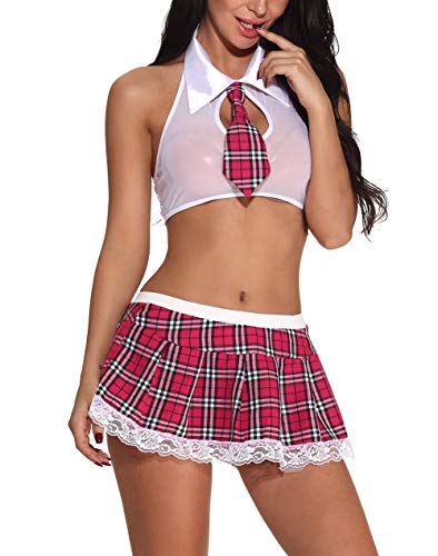 Schulmädchen dessous set, sexy outfits, mit einem Crop-Top mit angefügten Mini gebunden, Schlüsselloch-Ausschnitt Büste, Krawatte vorne, passenden Plaid Mini rock. es ist extrem bequem und atmungsaktiv als jede andere Nachtwäsche