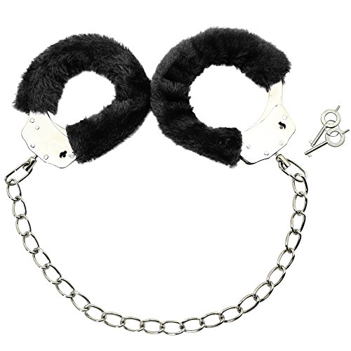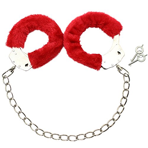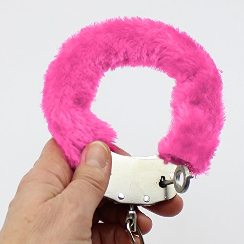 Handschellen Plüsch, Material: Handschelle: Metall, Ummantelung: Plüsch, Farben: rosa, rot oder schwarz, Größe (LxBxH): ca. 8x28x2 cm, mit 2 Schlüsseln, Sicherheitshebel vorhanden, kann ohne Schlüssel geöffnet werden.