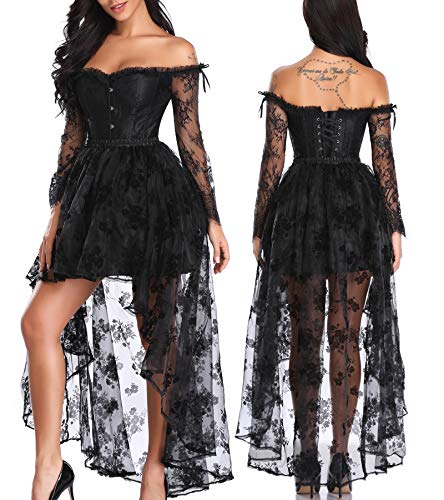 Der gesamte Anzug enthält 1 Korsett Top + 1 Spitzenkleid. kaufen Sie diese Farbe und Sie können separat Paaren jede von Ihnen mit verschiedenen Kleidungsstücken, um die volle Verwendung dieses Korsetts zu erhalten. Stil: klassisch & traditionell. die einzigartige unregelmäßige Länge Design-vorne kurz und lang zurück, bringt das Kleid ein Gefühl von 3-D-perept, so dass Sie Zoll schlanker aussehen.