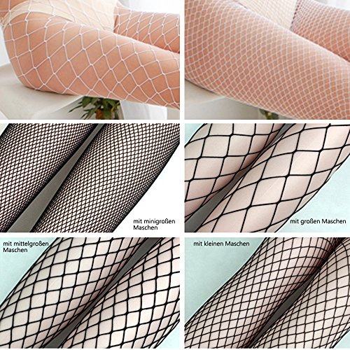 6 Stile von Arten: schwarze Netzstrumpfhosen in 4 verschiedene Maschenöffnungen von kleinen Maschen, mittelgroßen Maschen, großen Maschen und minigroßen Maschen, weiße Netzstrumpfhosen in 2 verschiedenen Maschengrößen von großen Maschen und kleinen Maschen, jeweils Maschenweite für 1 Stück, Ihre verschiedenen Bedürfnisse zu erfüllen.